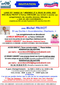 Retrouver toutes les informations de l’événement « Sur un air d’accordéon » du 25-26-27-28 avril 2022.